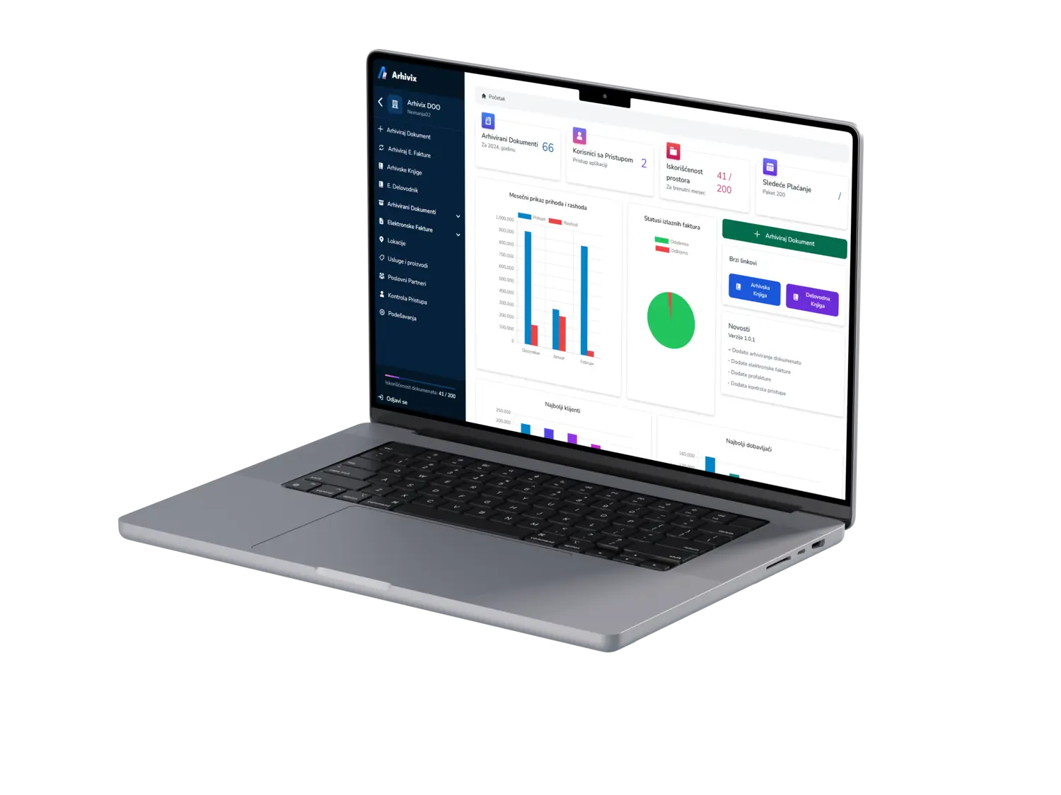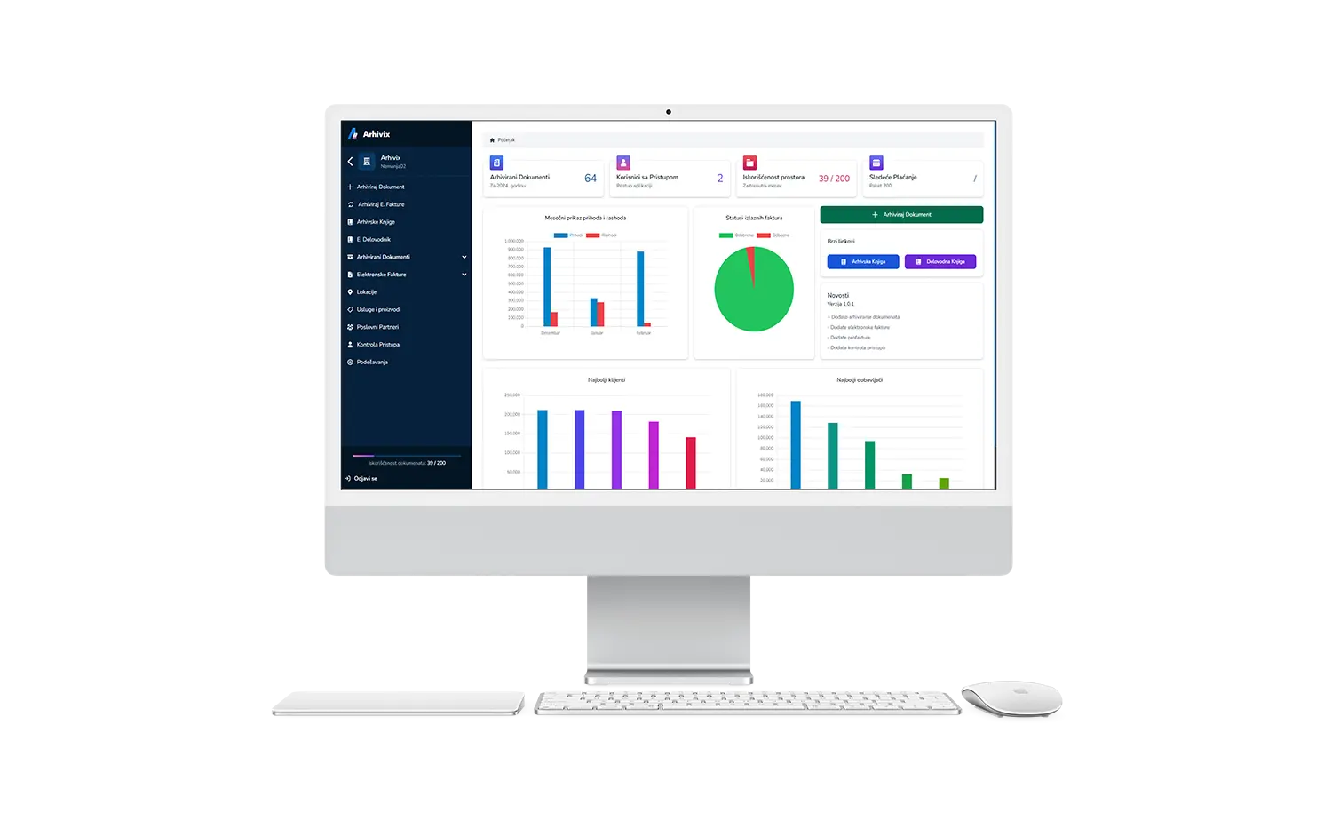 Naša aplikacija nudi širok spektar funkcionalnosti, uključujući rad s e-računima, upravljanje računima i arhiviranje dokumentacije. Također pružamo podršku za razne vrste dokumenata i olakšavamo organizaciju i praćenje vaših financijskih transakcija.